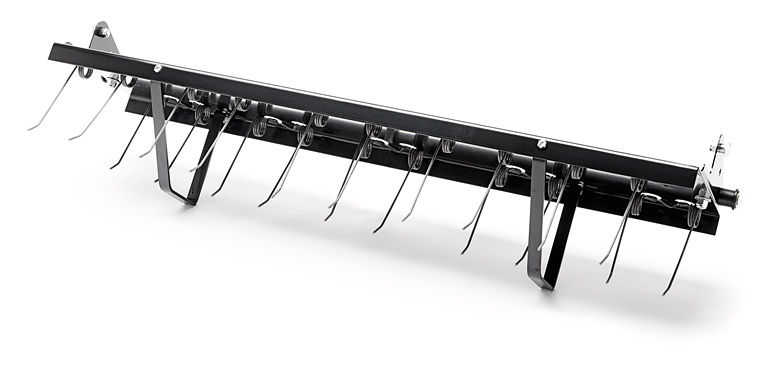 Grebač za travu je jedan od novih priključaka za platformu (586 63 72-01). Lako uklanja mahovinu za zdraviji travnjak, a zupci su termički obrađeni i tako dodatno izdržljivi.